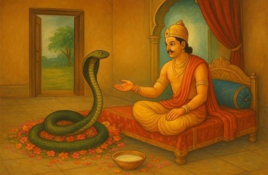 राजा के पलंग तक जाने तक सांप का निश्चय पूरी तरह से बदल गया। उधर समय से कुछ देर बाद सांप राजा के शयन कक्ष में पहुंचा। सांप ने राजा से कहा, राजन! मैं तुम्हें काटकर अपने पूर्व जन्म का बदला चुकाने आया था, परन्तु तुम्हारे सौजन्य और सद्व्यवहार ने मुझे परास्त कर दिया।